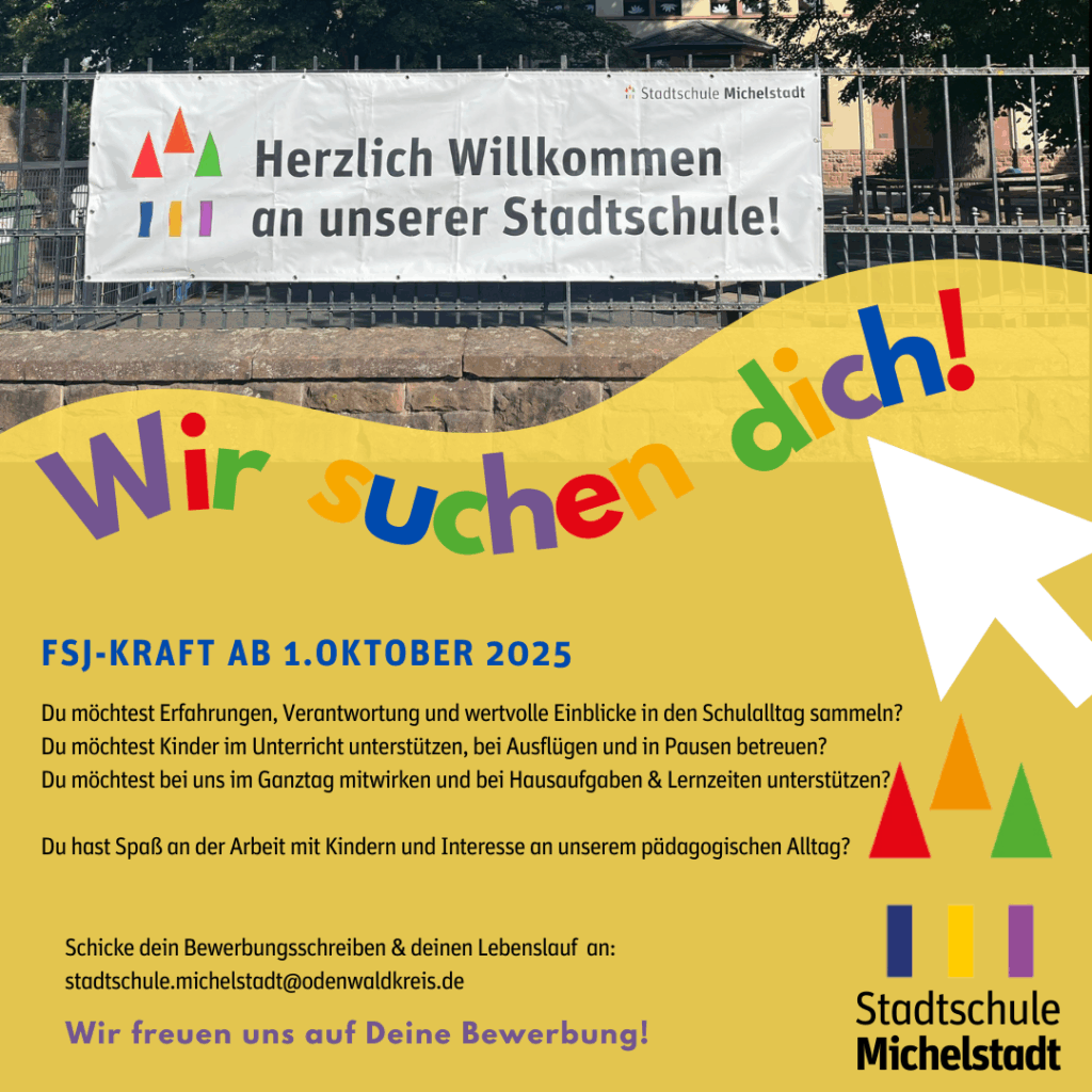 Das Sekretariat ist in den Herbstferien am 16. und 17.10.2025 in der Zeit von 8:00 bis 12:00 Uhr besetzt. Außerhalb dieser Zeiten schicken Sie uns bitte eine email mit Ihrem Anliegen über das Kontaktformular oder an stadtschule.michelstadt@odenwaldkreis.de.