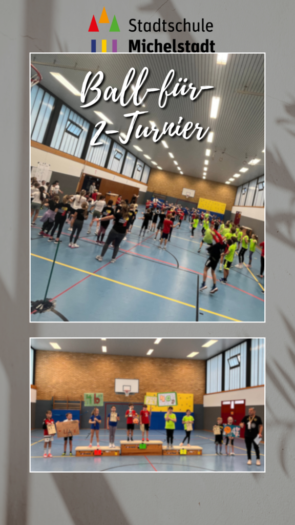 Nach dem Turnier der 3. Klassen im November 2025 waren nun die 4. Klassen gefragt! Im Rahmen des Spiels „Ein Ball für 2“ spielten die Mädels und Jungs der 4. Klassen im Turniermodus „Jeder gegen jeden“ den Sieger aus. Dabei durften wie jedes Jahr die beiden 4. Klassen aus der Schule am Hollerbusch sehr herzlich als Gastklassen begrüßt werden. In spannenden Spielen und bei toller Atmosphäre wurde am Ende die 4a der Stadtschule mit ihrer Klassenlehrerin Frau Schnellbacher souveräner Turniersieger. Ein herzliches Dankeschön geht hierbei besonders an die Elternhelfer für das gemeinsame Frühstück und das Mensapersonal.
