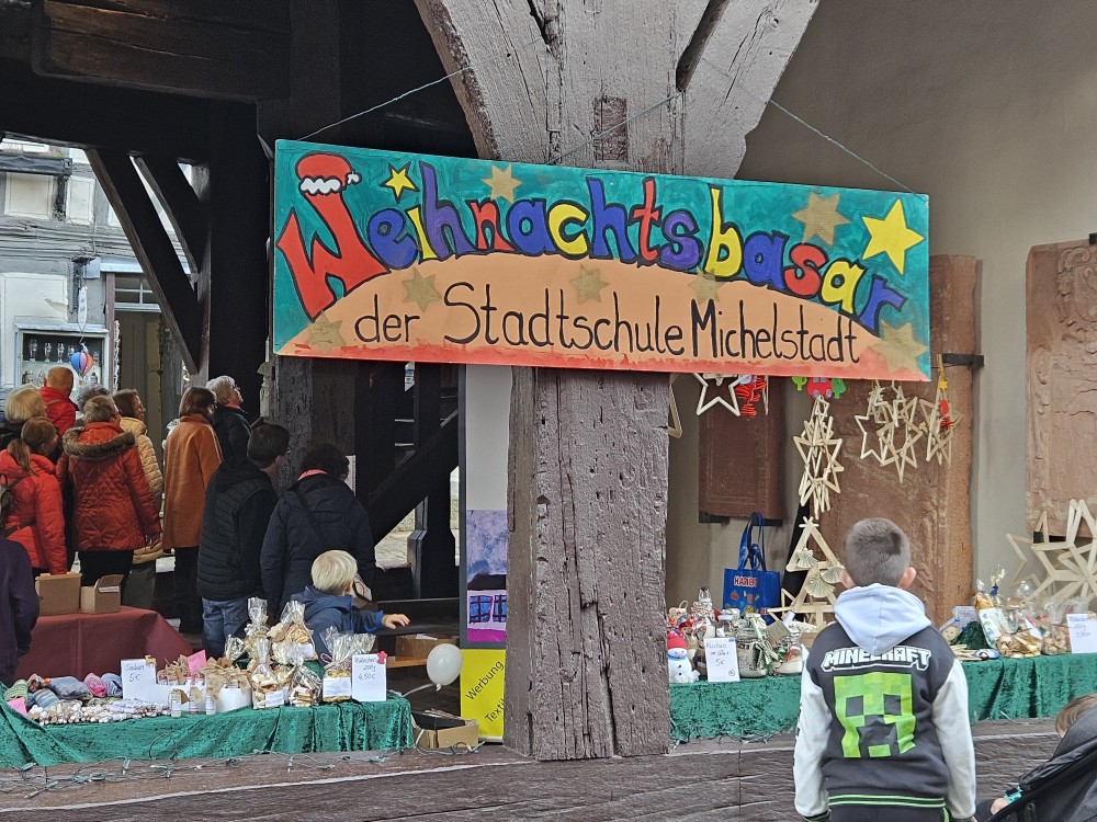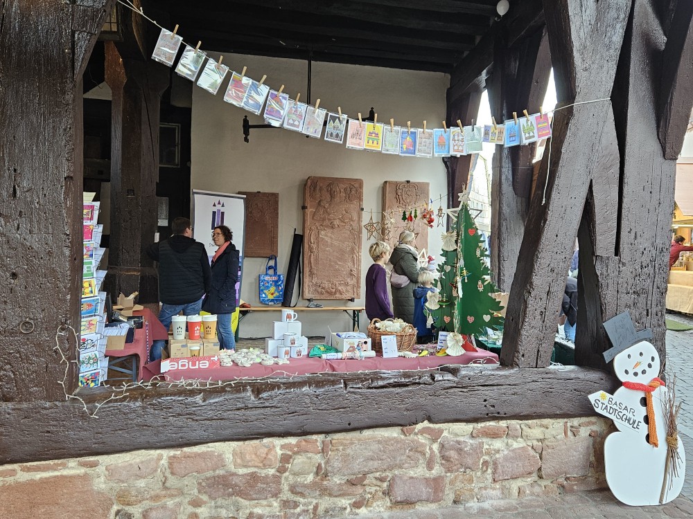 Nachdem sowohl der Standort, als auch das Datum vom letzten Jahr für gut befunden wurden, haben wir den Weihnachtsbasar der Stadtschule auch in diesem Jahr am dritten Adventswochenende unter dem Rathaus stattfinden lassen.
