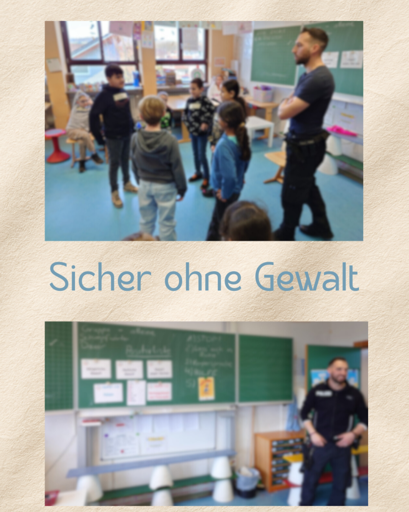 Die 3. Klassen hatten das Projekt “Sicher ohne Gewalt”. Die Polizisten erläuterten die 3 Arten von Gewalt. In Rollenspielen erprobten die Kinder gewaltfreie Lösungen von Alltagssituationen. Ziel dieses Projektes ist es dass die Kindern in schwierigen Situationen selbstbewusst und richtig reagieren.