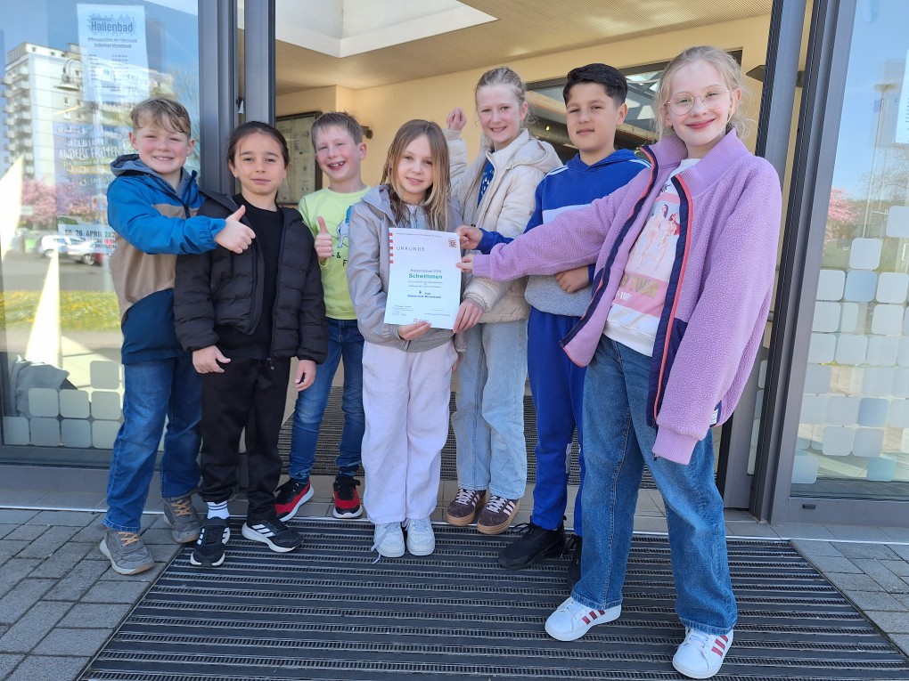Am vergangenen Mittwoch haben acht Kinder der 3. Klassen am jährlichen Kreisschwimmen teilgenommen. Dieses Jahr waren 7 Mannschaften von umliegenden Grundschulen aus dem Odenwaldkreis vertreten. In verschiedenen Wettkampfdisziplinen zeigten die Kinder Ihr Können. Die Mannschaft der Stadtschule konnte dabei den 4. Platz erzielen. Besonders erwähnenswert ist hierbei, dass sich die Kinder gegen zwei Mannschaften von Viertklässlern durchsetzen konnten.